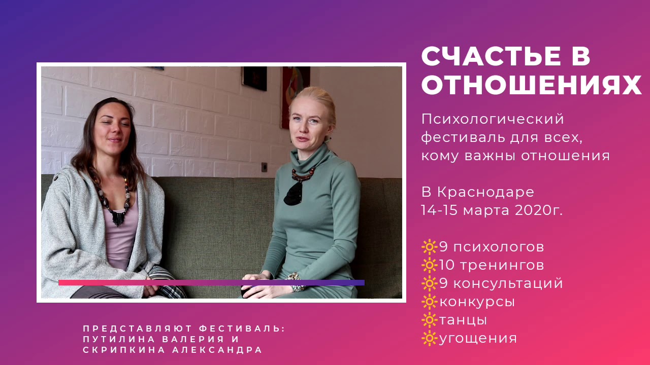 Психологический фестиваль "Счастье в отношениях", тренеры: Валерия Путилина, Ирина Евгеньевна Кравченко и другие…